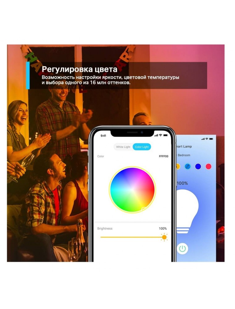 RGB լուսավորությամբ խելացի լամպը բաղկացած է 16 մլն երանգներից: Նրա հատուկ տեխնոլոգիայի շնորհիվ, կարող է խնայել և սպառել ավելի քիչ էներգիա: